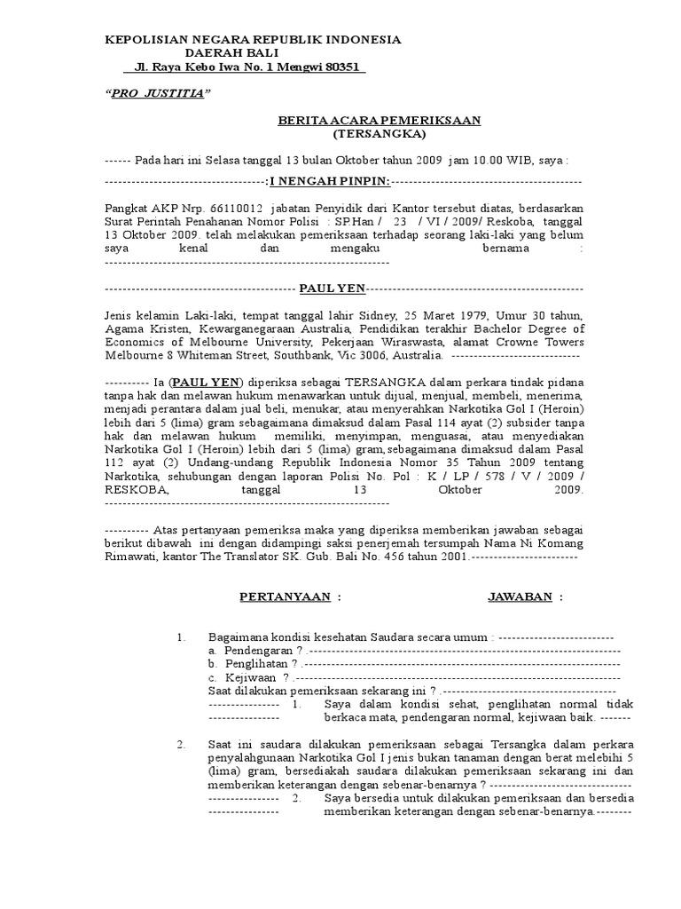 Pertanyaan berita acara pemeriksaan tersangka. Ini menjadi pemeriksaan perdana Nurdin Abdullah. Pertanyaan Apakah seorang tersangka yang diduga melakukan tindak pidana dan polisi telah melakukan BAP Berita Acara Pemeriksaan apakah tersangka diperbolehkan mendapatkan BAP tersebut. Kepolisian negara republik indonesia daerah sumatera barat direktorat reserse kriminal pro.