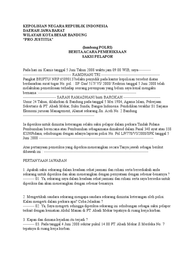 Usai dirinya ditetapkan sebagai tersangka dan ditahan. Rizieq dicecar 84 pertanyaan setelah menjalani pemeriksaan sekitar 12 jam. Contoh berita acara pemeriksaan tersangka leave a comment.