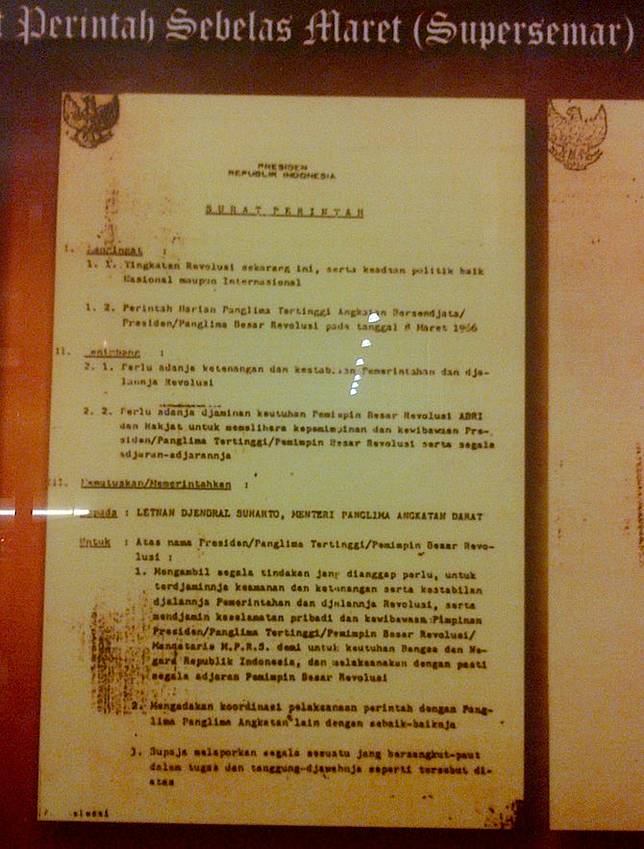 Salah satu isi surat perintah sebelas maret supersemar adalah. Surat Perintah Sebelas Maret Supersemar merupakan surat perintah yang ditandangani oleh Presiden Republik Indonesia Soekarno pada tanggal 11 Maret 1966. Singkatan Supersemar ialah permainan atas. Surat itu juga yang menjadi awal jatuhnya rezim orde lama dibawah kepemimpinan Presiden Soekarno dan menandai awal babak baru kepemimpinan Soeharto dalam rezim orde barunya.