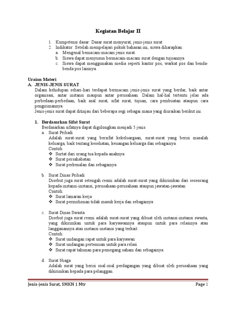 Bahasa Indonesia Kelas 7 Perbedaan Antara Surat Pribadi Dan Surat Dinas