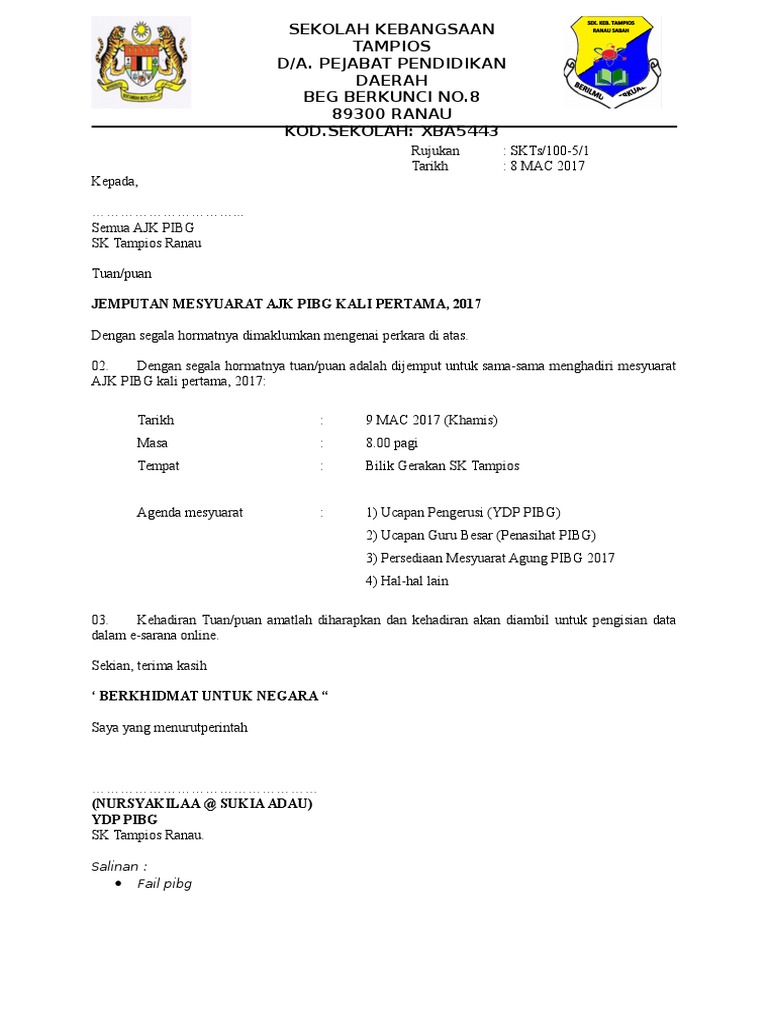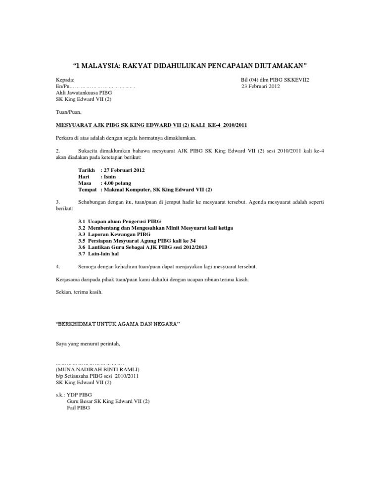 PIBGSMKRPB1002 44. Surat panggilan mesyuarat minit mesyuarat 1. Surat Jemputan Kepada YDP PIBGdoc.