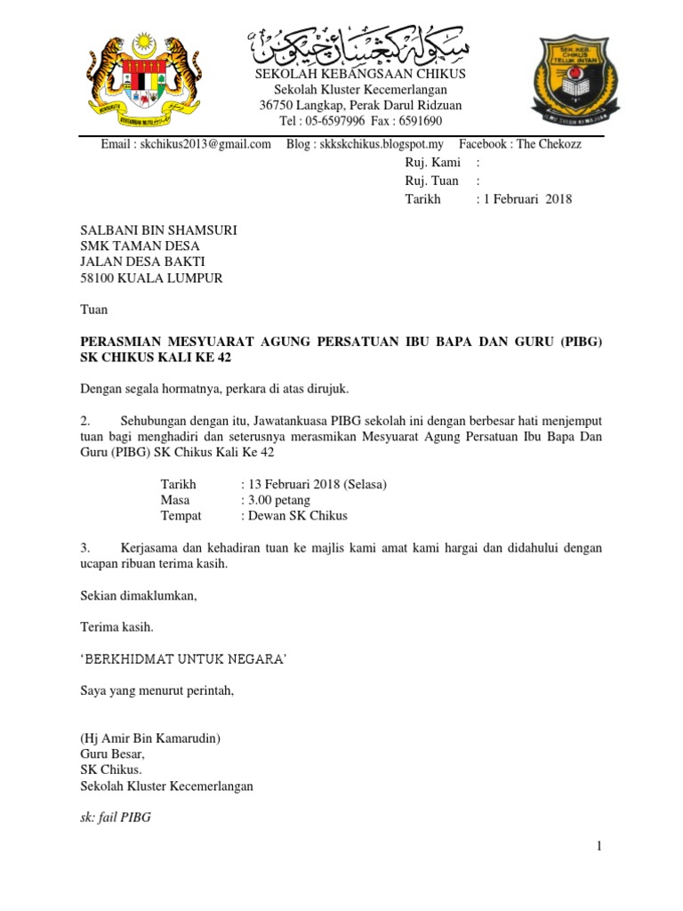 Dewan Besar SK Tanah Lalang 3. Sebagai setiausaha pibg pelbagai surat perlu dibuat sempena mesyuarat agung pibg yang akan diadakan pada hujung bulan ni cn sukacita berkongsi dengan anda contoh surat jemputan. Surat jemputan ibu bapa mesyuarat pibg 2015 1.