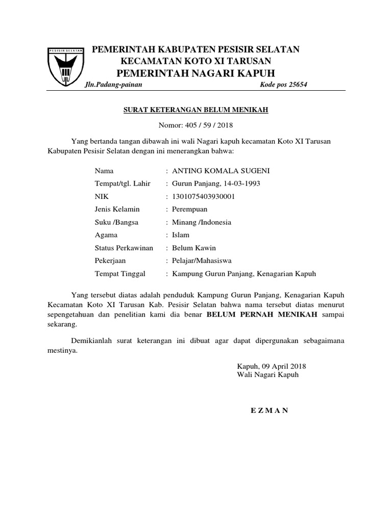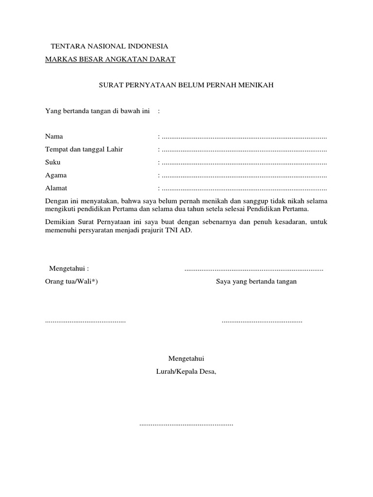 Contoh surat pernyataan belum menikahdocx. Download Full PDF Package. Petugas membuatkan Surat Keterangan belum pernah menikah 4.