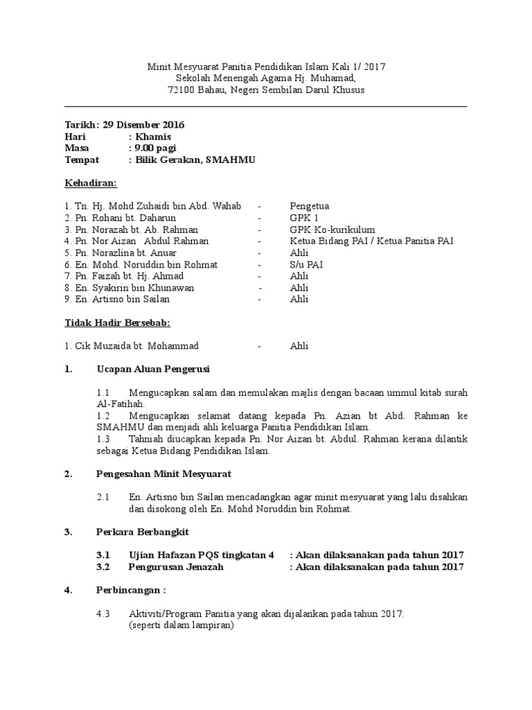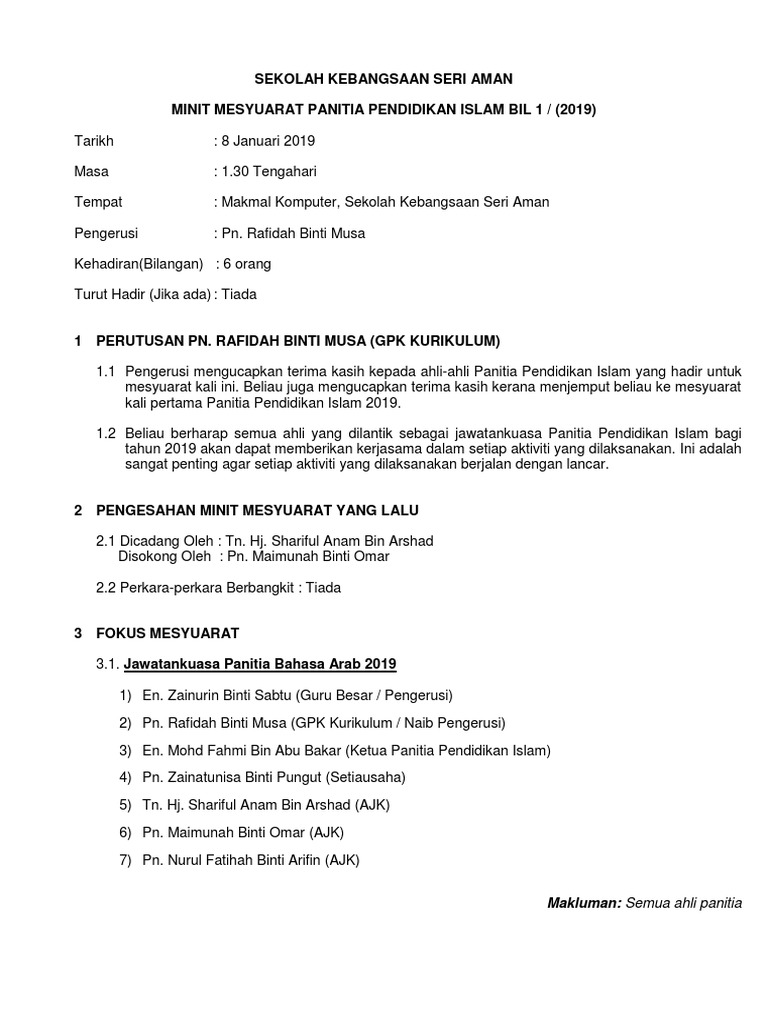 Surat panggilan mesyuarat panitia pendidikan islam kali pertama. War Room SMK Seri Samudera KEHADIRAN 11 Hadir BIL NAMA JAWATAN 1 EN ZAINI BIN ZULKIFLI Penyelia Pendidikan Khas JPN Perak 2 HJ MUSA BIN HAMID Penolong PPD Pengurusan Sekolah M 3 NOR ZARIDAH BT MOHD TAMIN Guru Besar SK Ayer Tawar 4 AZMAN BIN. FORMAT SURAT PANGGILAN MESYUARAT SEKOLAH KEBANGSAAN KUBANG KIAT. Surat Kertas Kerja Motivasi Pendidikan RPT Eviden PBS Band 6 Ting 1 2 3 Tips Tutorial Makanan Resepi.