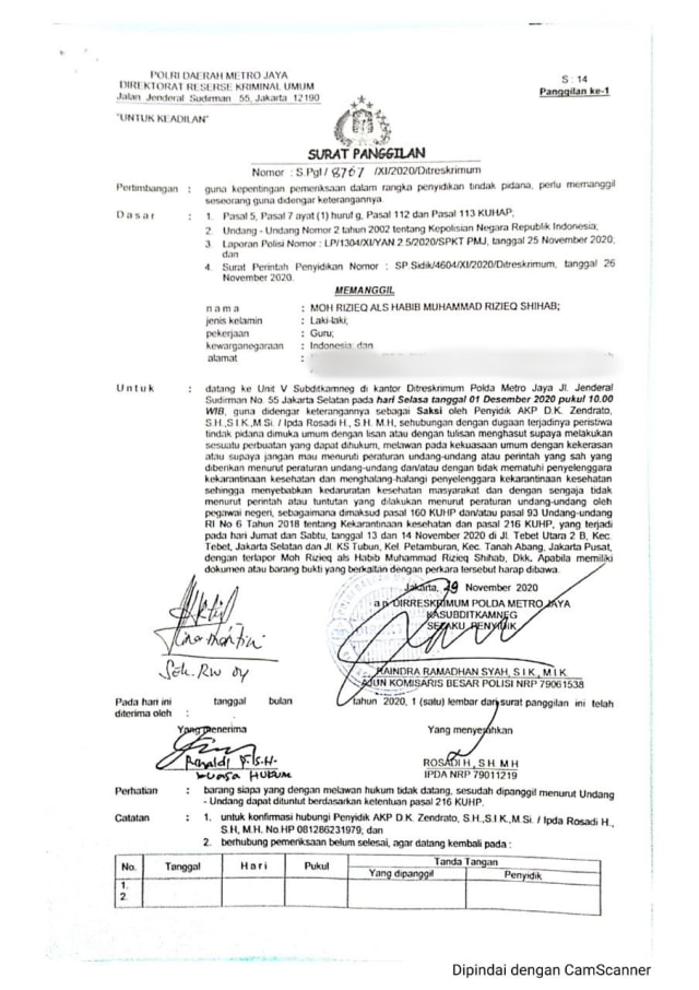 Surat Panggilan Kepolisian adalah surat Resmi yang sah dari kepolisian yang didalamnya berisi pemanggilan kepada seseorang untuk menghadiri panggilan tersebut guna dimintai keterangannya dalam status sebagai saksi ataupun tersangka. Pemanggilan itu apa ya. Sejumlah moment terjadi saat penyidik Polda Metro hendak mengantar surat panggilan kedua ke rumah Rizieq mulai dari dihadang disoraki dan diceramahi Kamis 3 Desember 2020 1006 WIB Tweet.