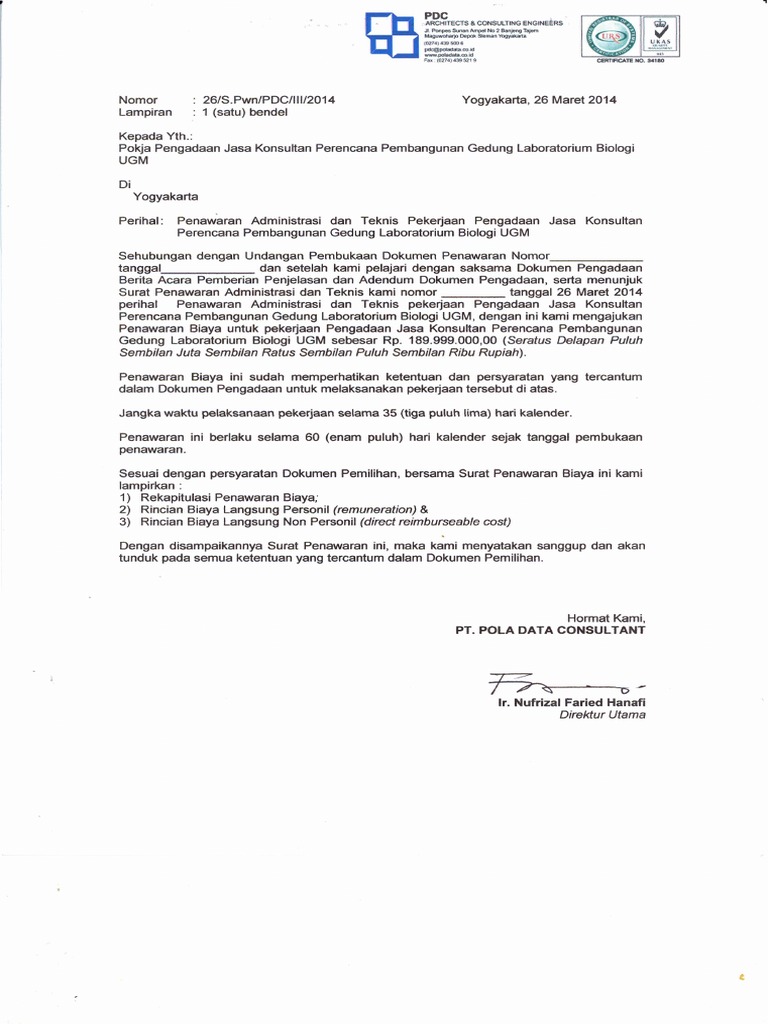 Surat Penawaran Harga Jasa Konsultan