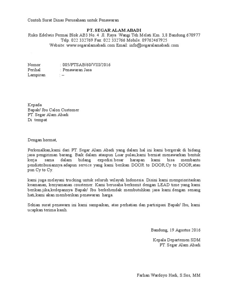 Contoh Surat Penawaran Jasa Pengiriman yang baik dengan format profesional sebagai bahan referensi dalam membuat surat penawaran yang resmi. Surat penawaran jasa merupakan salah satu jenis surat resmi. 13 Contoh Surat Penawaran Lengkap Jasa Kerjasama Barang Elektronik by Arifin Saddoen Contoh Surat Penawaran Saat ini kita hidup di zaman dimana bisnis man dan pengusaha adalah menjadi salah satu profesi yang banyak di gandrungi oleh banyak kalangan.