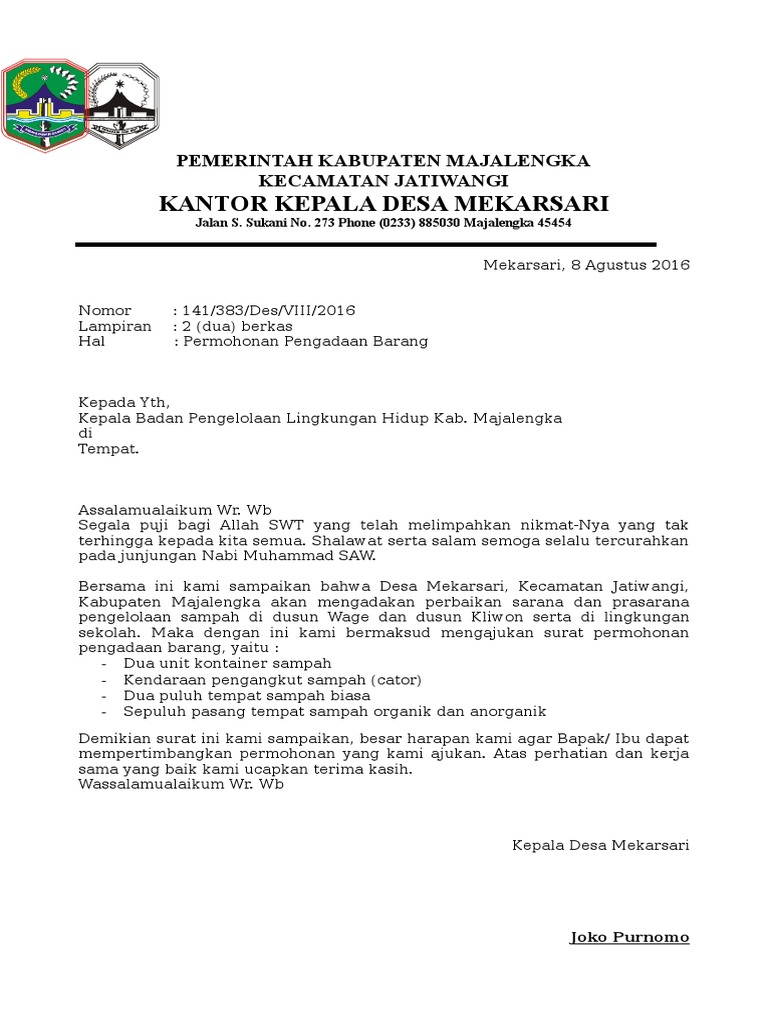 Contoh Surat Pengajuan Pengadaan Barang Kantor Contoh Resource