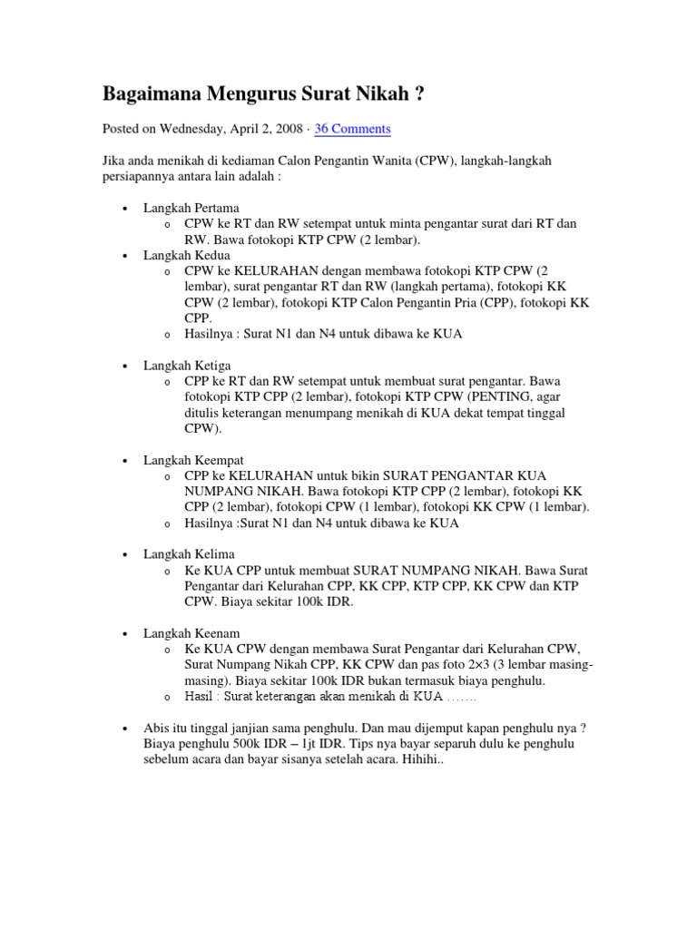 Ada Tuhan yang mengatur jodoh. Setelah mendapatkan pengantar dari ketua rt dan rw sambil juga melengkapinya dengan fotokopi ktp dan kk maka anda bisa meminta surat numpang nikah ke kelurahan. Syarat dan Cara Mengurus Surat Numpang Nikah 1.