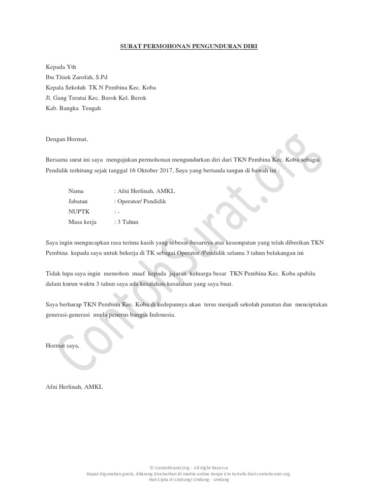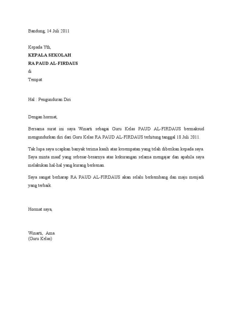 Surat Pengunduran Diri Guru Pdf