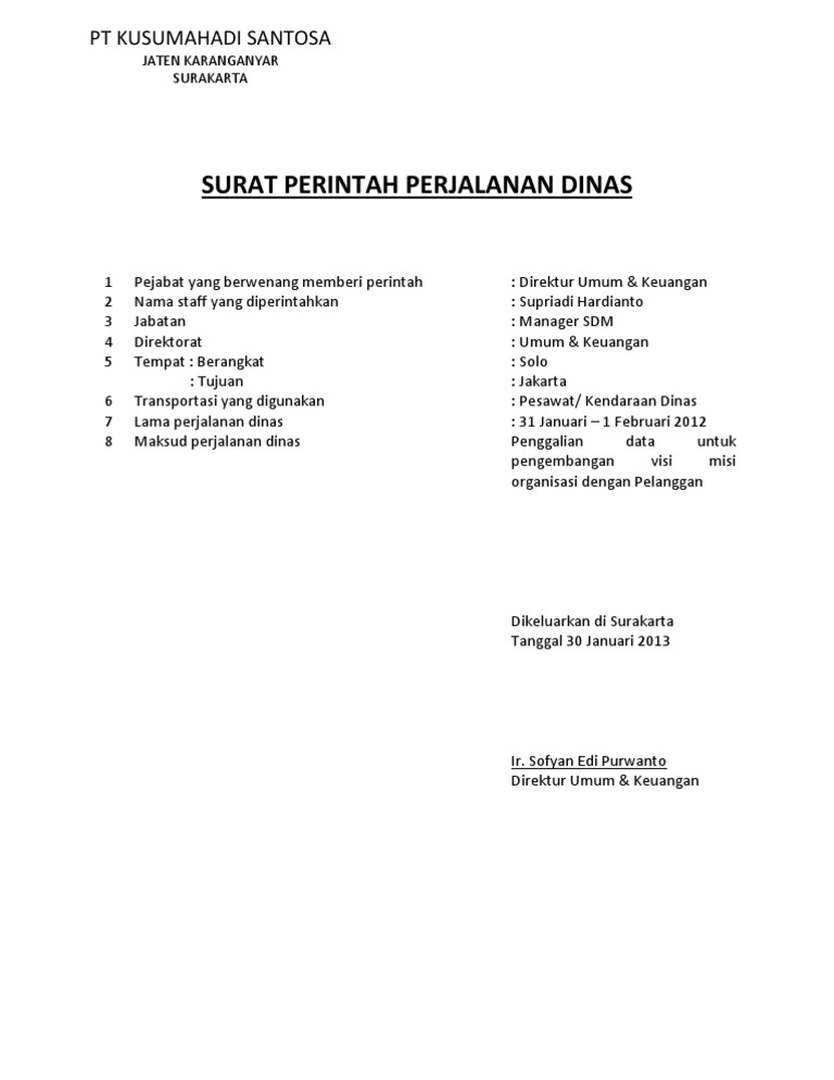 Sistem pembuatan surat perintah perjalanan dinas di dinas komunikasi dan informatika kabkotawaringin timur oleh. Hal ini makin bertambah memakan waktu karena jumlah perjalanan dinas yang makin bertambah disetiap. Jabatan Pangkat dari pegawai yang diperintahkan 4.