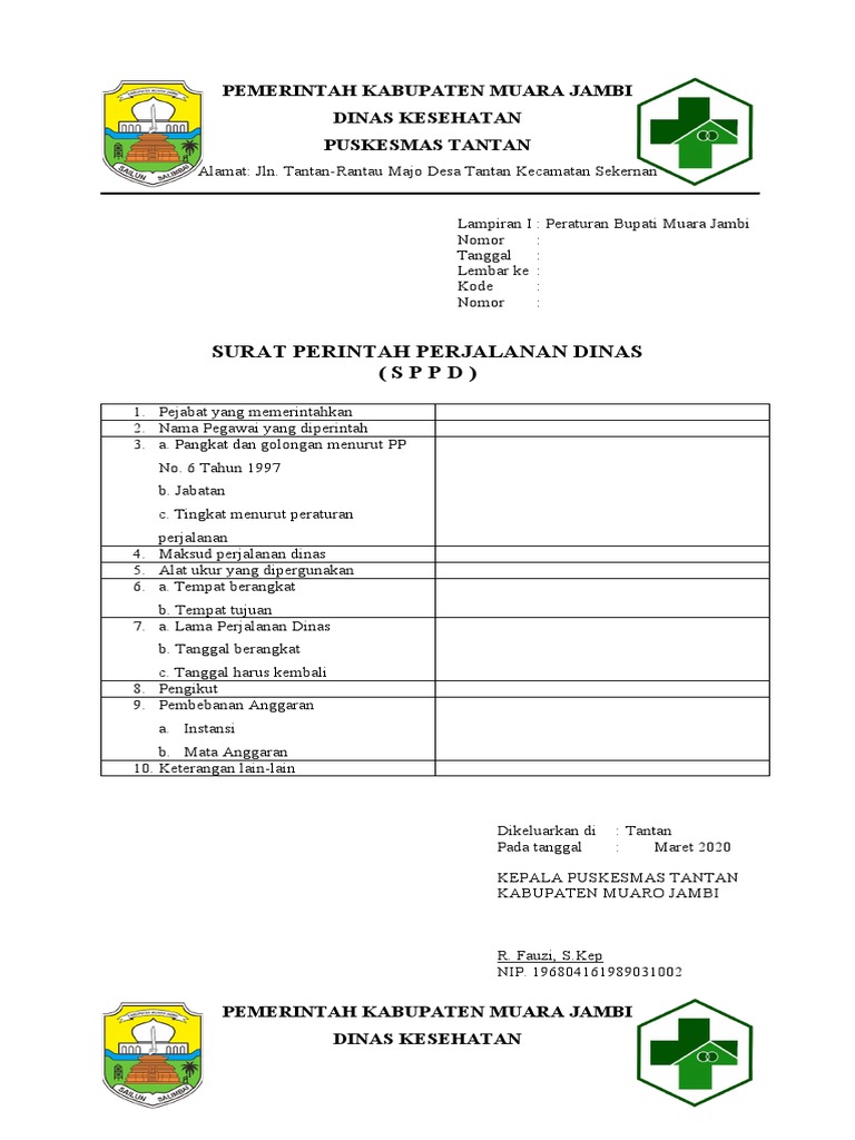 Untuk perjalanan dinas pejabat eselon II mudah diawasi karena surat perintah perjalanan dinas harus ditandatangani bupatiwakil bupati atau Sekda. Surat Perintah Perjalanan Dinas SPPD. PEMERINTAH KABUPATEN CILACAP DINAS PENDIDIKAN SMA NEGERI 1 SAMPANG Jalan Lapangan Nomor 1 Karangtengah Jawa Tengah 53273 Telp.