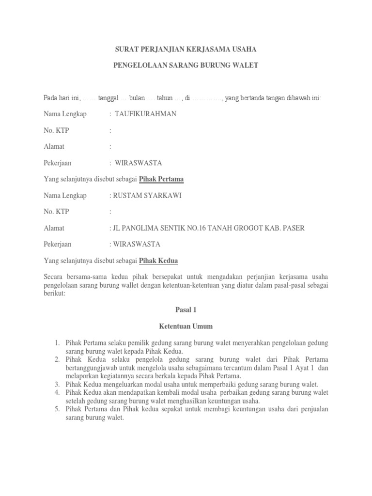 Kedua pihak telah sepakat melakukan kerjasama usaha dengan ketentuan sebagai berikut. Contoh Surat Perjanjian Kerjasama. SURAT PERJANJIAN KERJASAMAdocx - Google Drive.