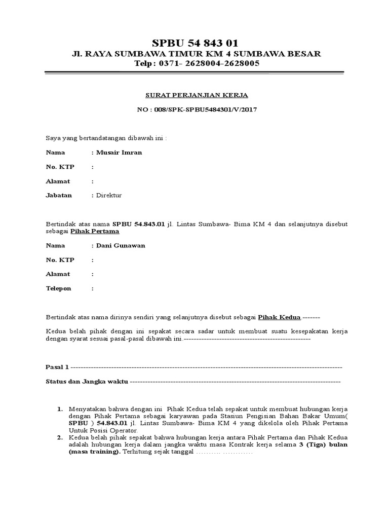 Dalam surat perjanjian kerja kontrak hanya berlaku pada karyawan kontrak. Contoh surat perjanjian kerja karyawan tetap pdf berbagi contoh surat. Formatnya dapat dibagi menjadi tujuh bagan mendasar.