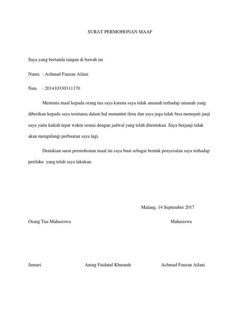 Surat Permintaan Maaf In English