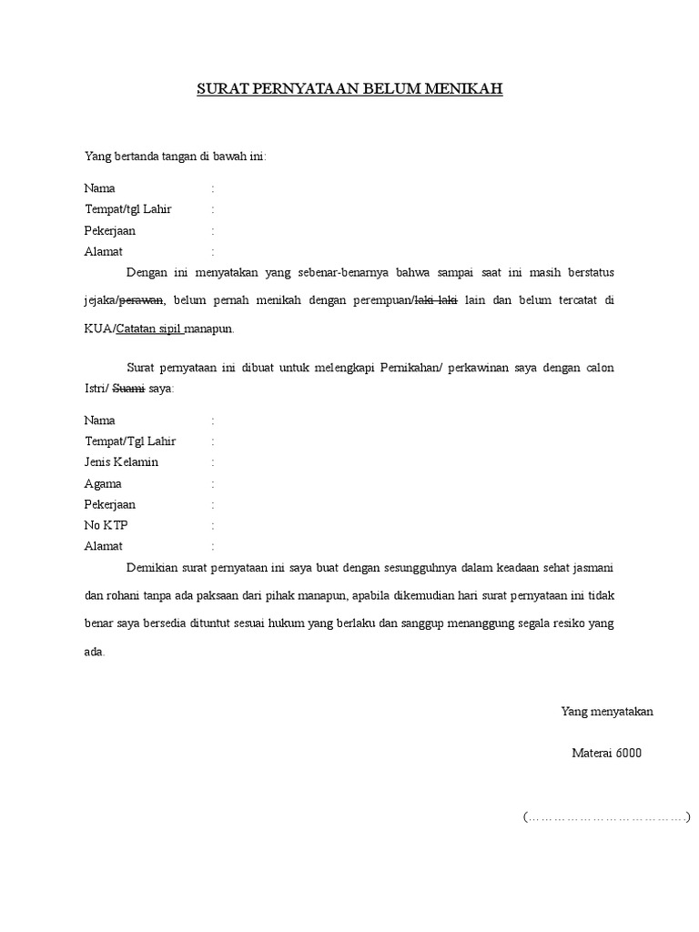 Surat Pernyataan Belum Menikah Kua Pdf