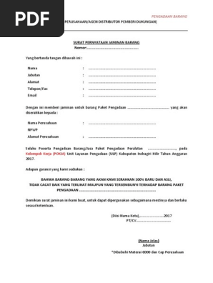 Ketua Sekretaris dan para anggota Panitia Pengadaan BarangJasa. Surat pernyataan mitra kerja dalam pelaksanaaan pengadaan barang dan jasa secara elektronik escm pt antam tbk. Surat PernyataanSertifikat Garansi Barang By - Nidaur Rahmah Dalam Pengadaan Barang untuk menjamin kelaikan penggunaan barang maka Penyedia menyerahkan Surat PernyataanSertifikat GaransiKartu JaminanGaransi Purna Jual yang menyatakan adanya jaminan ketersediaan suku cadang serta fasilitas dan pelayanan purna jual.