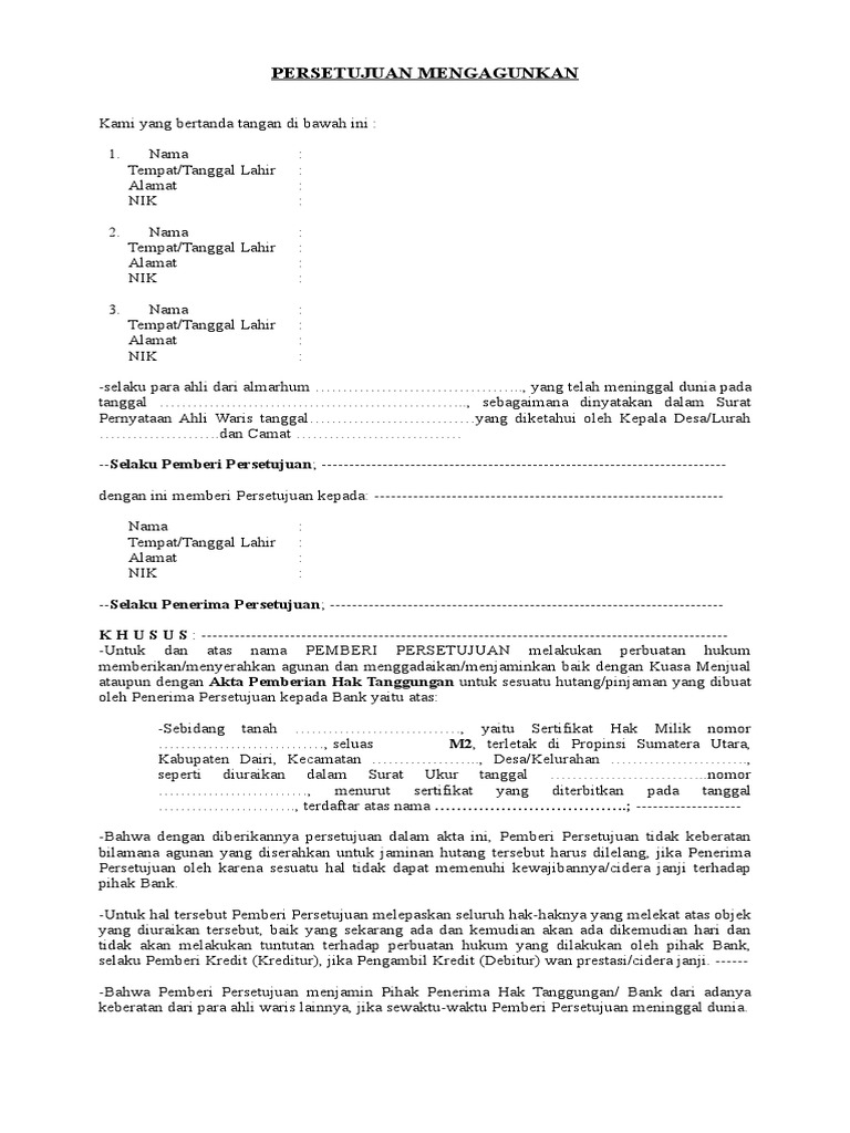 Surat persetujuan ahli waris doc. Surat ini biasanya dibuat oleh seorang anak atau anggota keluarga yang berhak menerima warisan dari orang yang telah meninggal dunia. Demikian Surat Keterangan dan Pernyataan Ahli Waris ini kami buat dengan sebenarnya diatas kertas bermaterai cukup dalam keadaan sehat jasmani dan rohani tanpa ada tekanan maupun paksaan dari siapapun dan apabila dikemudian hari keterangan dan pernyataan kami tidak benar maka kami bersedia dituntut sesuai. Surat Persetujuan Ahli Waris untuk Jual Beli Warisan.