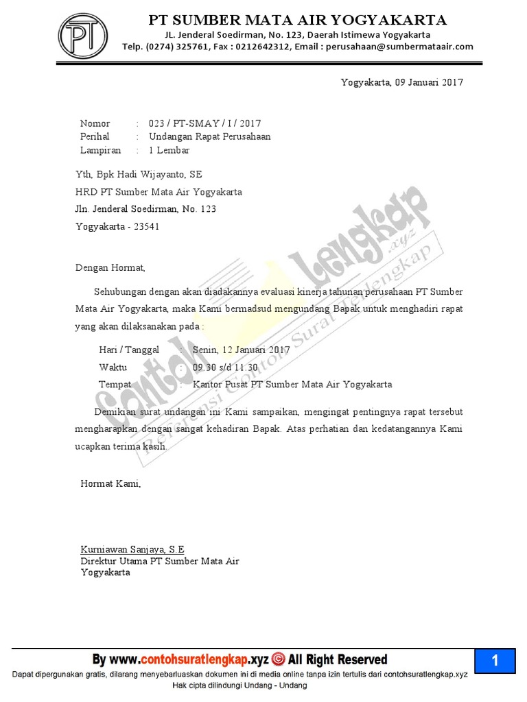 Surat Undangan Rapat Perusahaan Kepada Karyawan